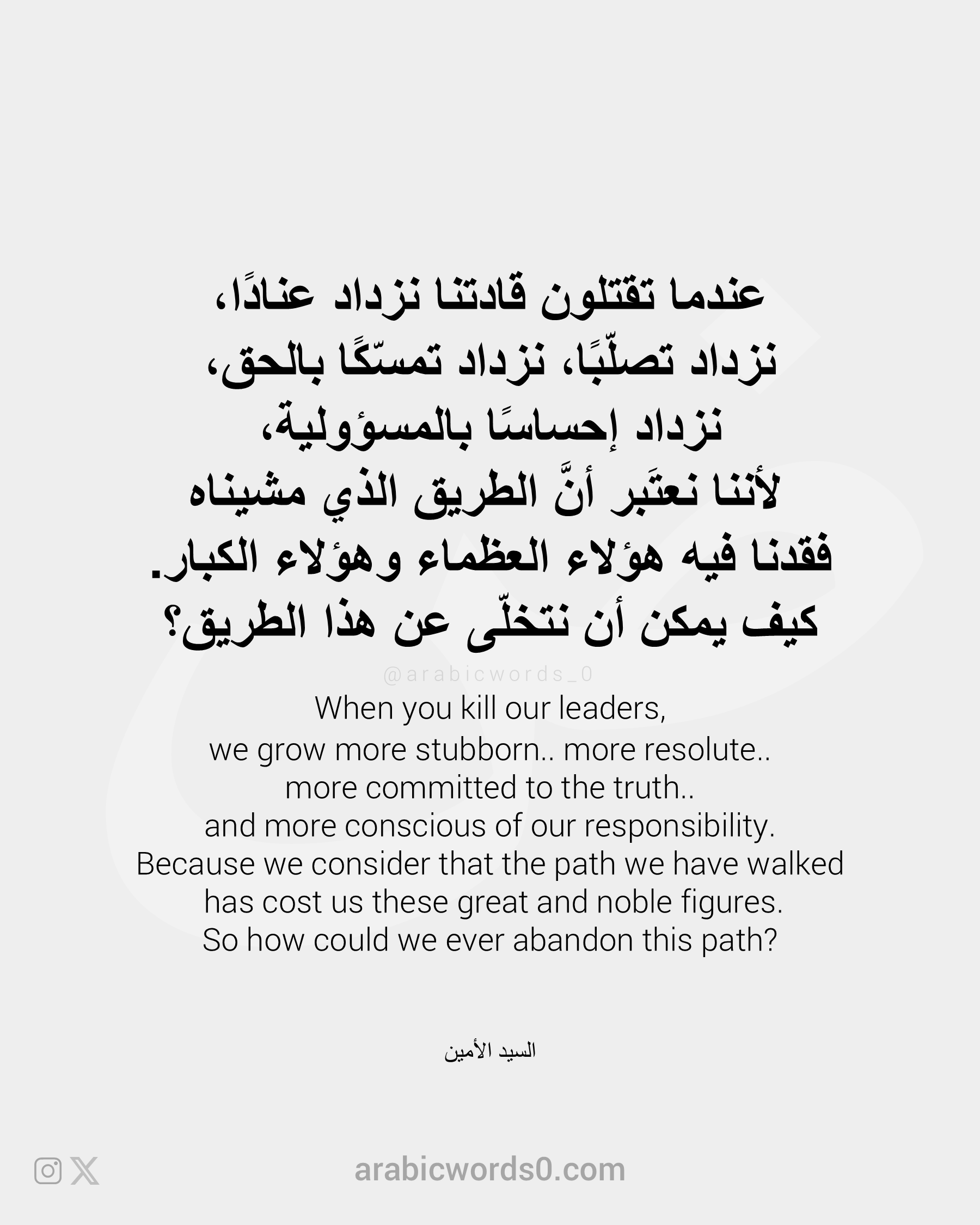 عندما تقتلون قادتنا نزداد عنادًا، نزداد تصلّبًا، نزداد تمسّكًا بالحق، نزداد إحساسًا بالمسؤولية، لأننا نعتَبر أنَّ الطريق الذي مشيناه فقدنا فيه هؤلاء العظماء وهؤلاء الكبار. كيف يمكن أن نتخلّى [...]