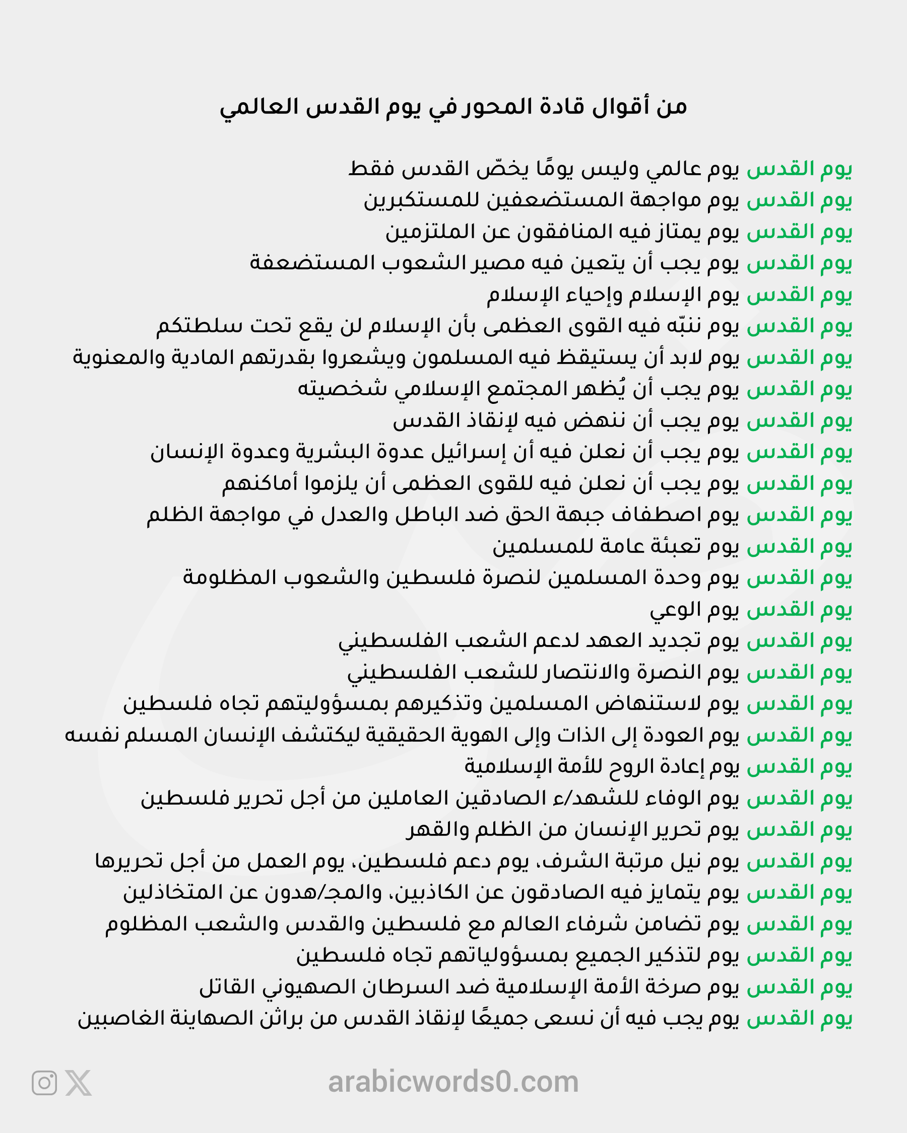 يوم القدس يوم عالمي وليس يومًا يخصّ القدس فقط يوم القدس يوم مواجهة المستضعفين للمستكبرين يوم القدس يوم يمتاز فيه المنافقون عن الملتزمين يوم القدس يوم [...]
