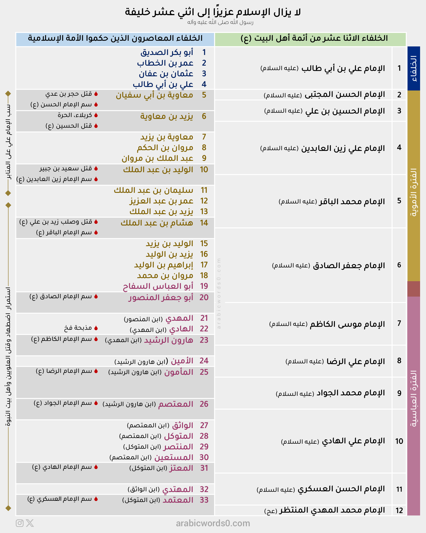 ورد في الحديث الشريف المجمع عليه بين المسلمين أن هذا الدين لا يزال عزيزًا إلى اثني عشر خليفة كلهم من قريش. واختلفت المذاهب في تعيين الأشخاص المقصودين، لكن الثابت هو أن هناك [...]
