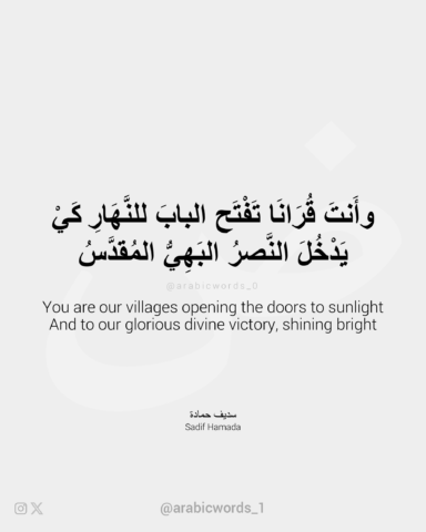 قِفِي خلفَكِ اصطَفَّتْ سَمَاءٌ وأَنفُسُ أَنْتِ أُمُّ الأرضِ والأرضُ تَحْرُسُ قَفِي واسمَعِي الأشجَارَ تَتْلو جُذورَها على [...]