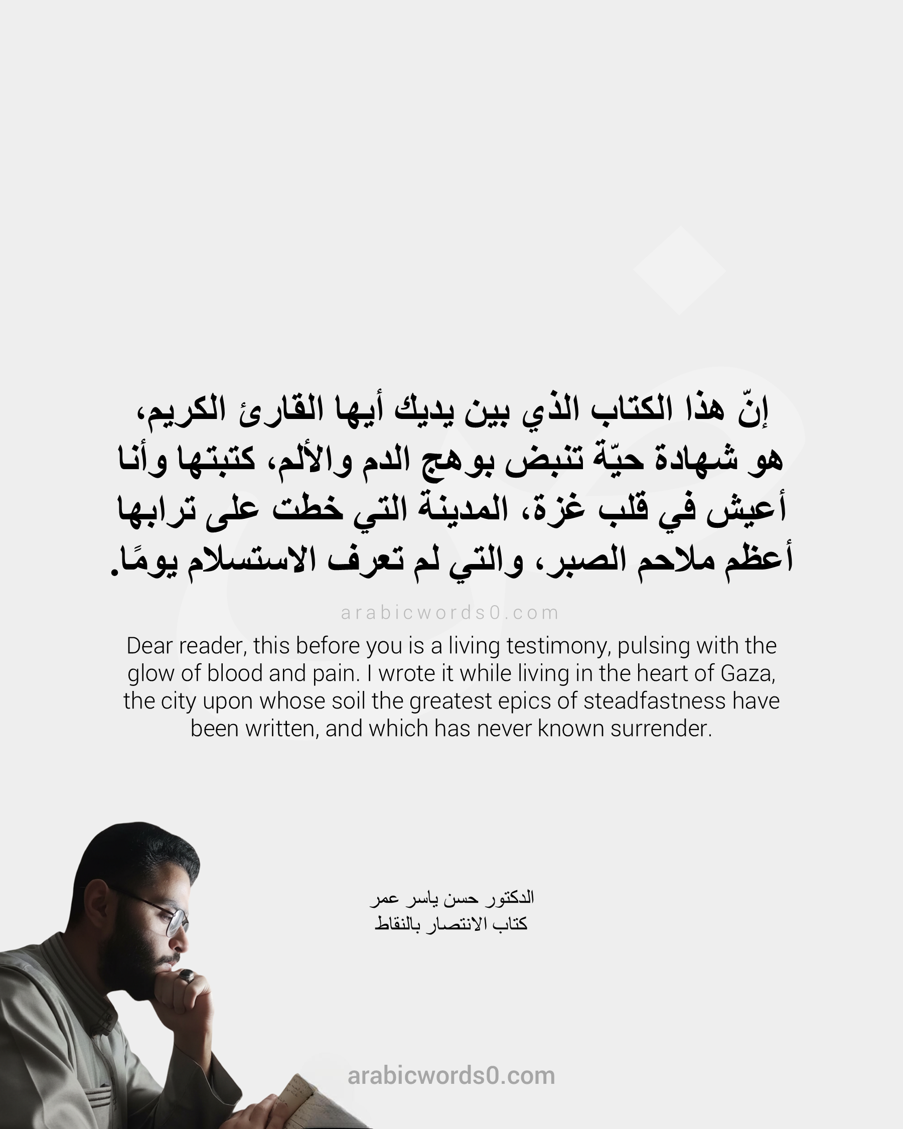 إنّ هذا الكتاب الذي بين يديك أيها القارئ الكريم، هو شهادة حيّة تنبض بوهج الدم والألم
